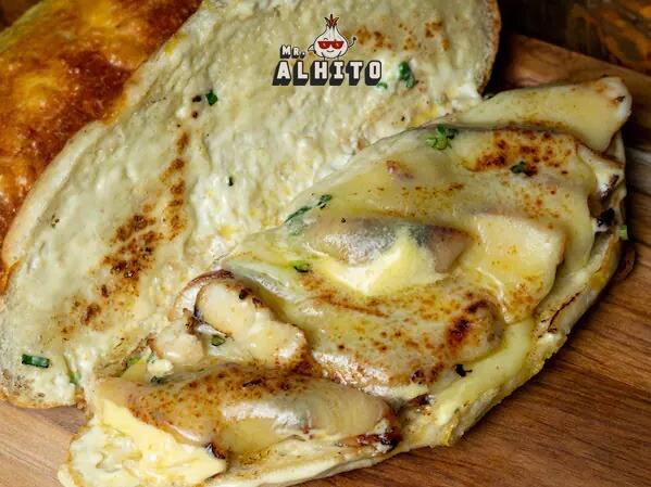 Pão Baguete 22cm com crosta de Parmesão, Creme de Alho especial, 200g de Filé de Coxão, Queijo Mussarela gratinado, finalizado com alho torrado.